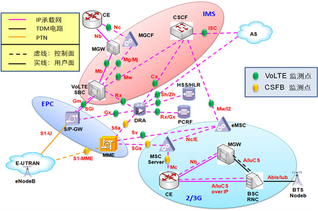 通过监测分析EPC、IMS、2G/3G的全部接口信令和数据,获得用户VoLTE的全协议流程信息和关键指标,快速定位网络中VoLTE的问题环节。