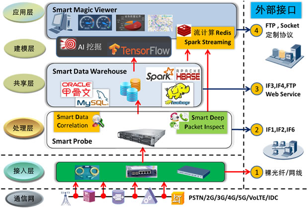 全部自主知识产权,关键技术包括:全协议解码、端到端关联、智能DPI、海量数据挖掘、AI智能分析、全视角数据展示;